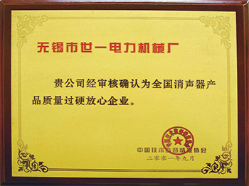 本廠視質量為生命,并已率先通過ISO9001:2008國際質量體系認證,是“重合同、守信用”的AAA級企業、無錫市首批“五星級”企業和計量合格單位,成為“全國消聲器 質量過硬放心企業”和國內大型鍋爐廠的合格供方。受國家環保總局的邀請,制定了《高壓氣體排放小孔消聲器》認定技術條件(HJT382-2007)。